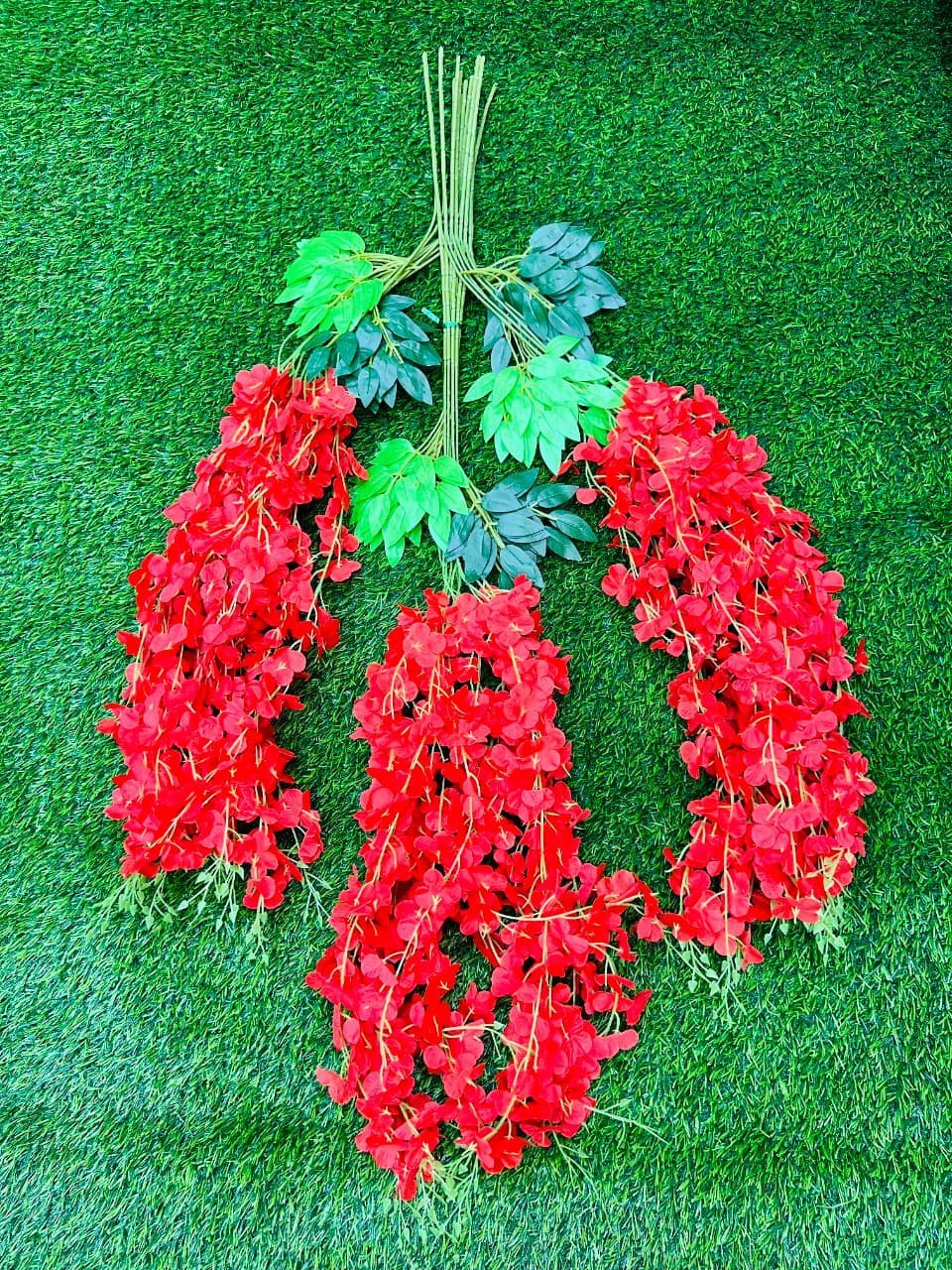 Realistic artificial red hanging flowers designed for home, party, and wedding decorations. Long-lasting and easy to maintain.