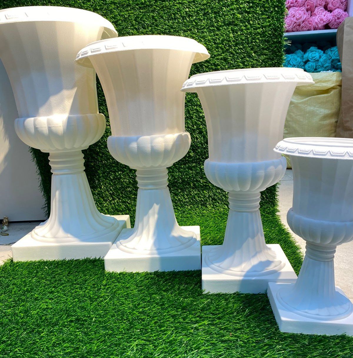 These urns are versatile enough for any space. Use them to display small ornamental trees, vibrant flowering plants, or dramatic faux arrangements. Their clean white finish brightens any corner, creating a focal point on decks, porches, or in sunrooms. They offer the upscale look of stone or concrete without the heavy weight, making them easy to move and style.