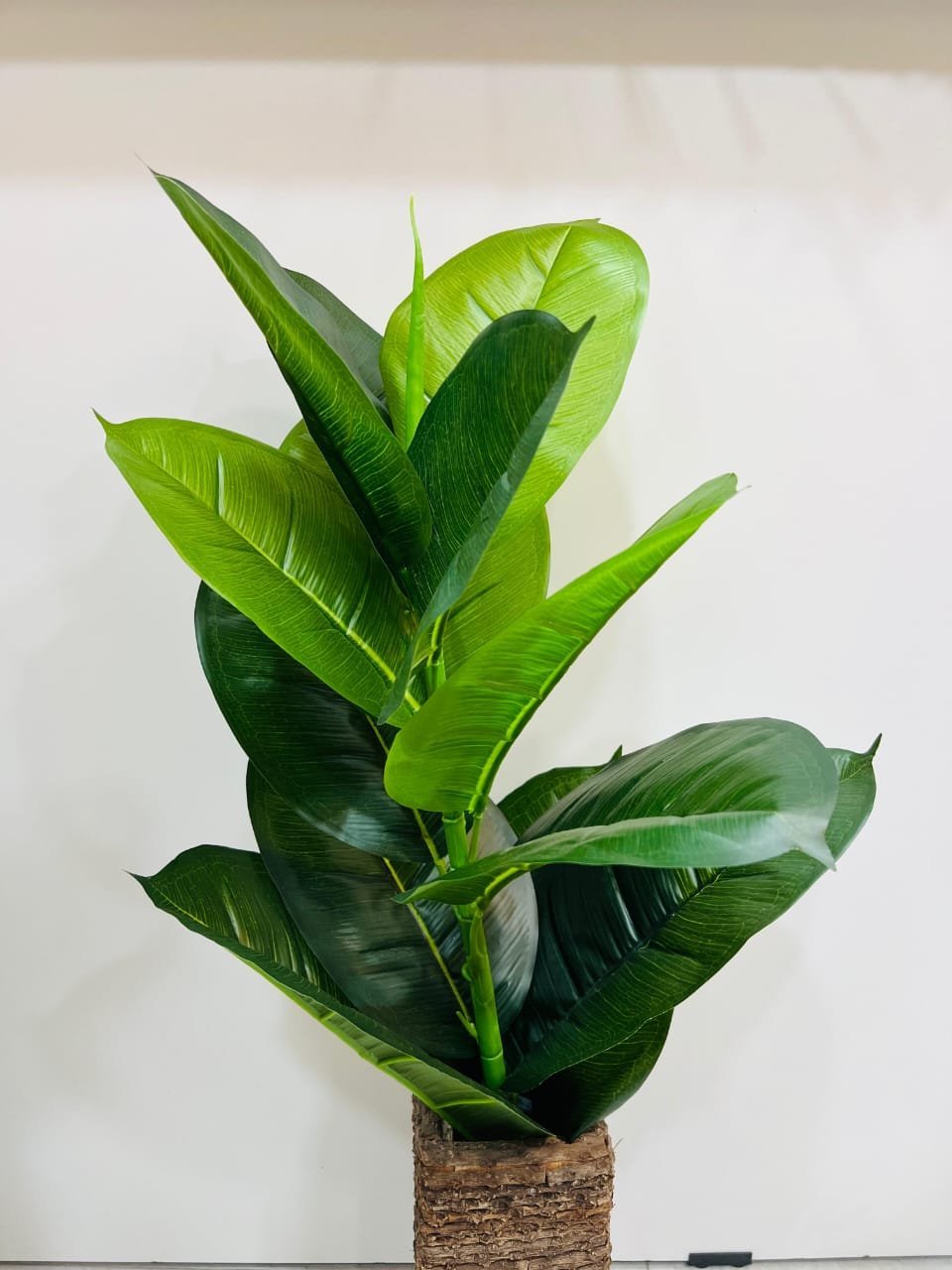 A lifelike tropical green plant designed to create a calming, natural atmosphere in any room without the need for maintenance.