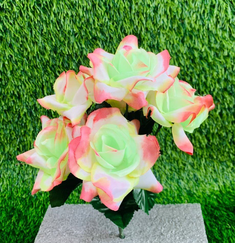 Infuse your decor with a fresh, contemporary palette using this striking Two-Tone Ombre Rose Bouquet. Each bloom showcases a mesmerizing color transition, starting with a cool, mint-green center that dramatically fades into a warm pink and coral ombre effect on the outer petals.